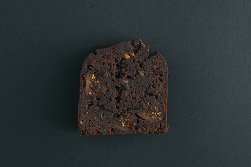 フィナンシェと同様に「生地」をイメージした、唯一無二のパウンドケーキです。 皮ごと挽いたナッツの香ばしさと、フランス・ボルドーで熟成されたラムが香る、しっとりしながらもずっしりと骨太な大人の焼菓子です。