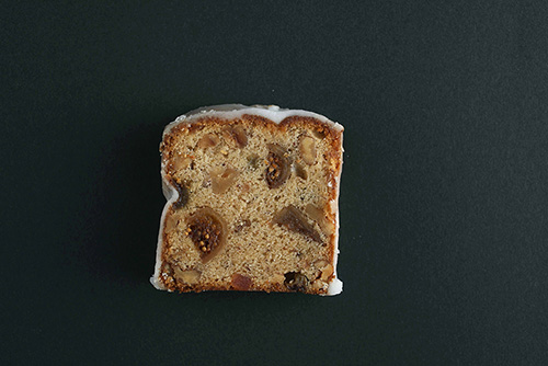 沢山のドライフルーツを洋酒に漬け込むこと数ヶ月…それらをたっぷりのクルミと合わせ、 しっかりとスパイス(シナモン・ナツメグ・クローブ)を効かせて焼きあげました。