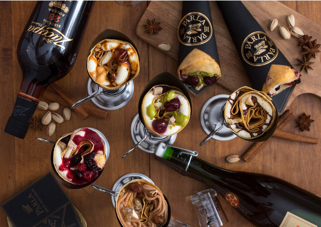 青山・銀座・表参道のショップでは、クレープとアルコールを合わせる「大人のマリアージュ」を提案。非日常感を演出する美しい店舗デザインも好評です。