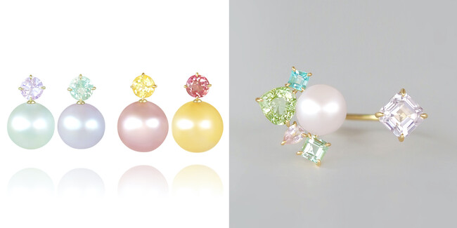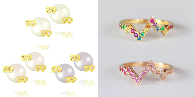 ユーモラスなデザインが特徴的な「ツヤツヤ・ピアス」は、限定数で先行販売される。圧倒的な光沢感にこだわって厳選されたドーム型の真珠は、3種類のカラーバリエーションから選ぶ事ができる。