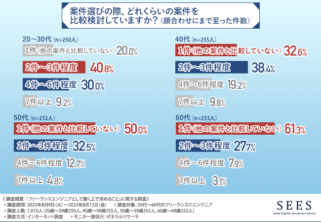 【案件を選べるのがフリーランスエンジニアの魅力のひとつ】実際どれくらい比較検討している?