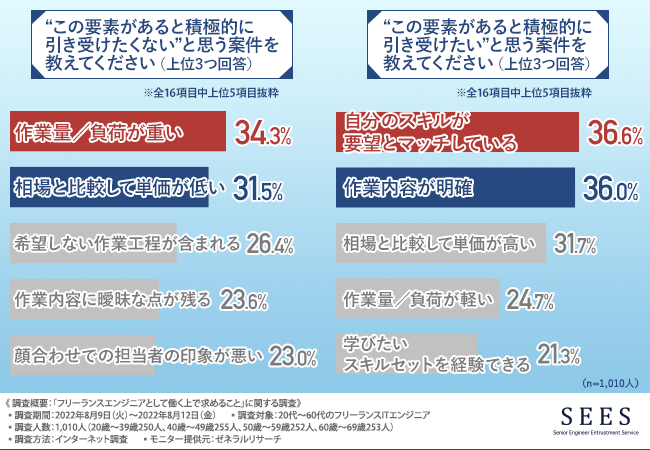 今回の調査で、フリーランスITエンジニアの方々が案件を選ぶ際に重視しているポイントや避けたい案件、積極的に引き受けたい案件が明らかになりました。