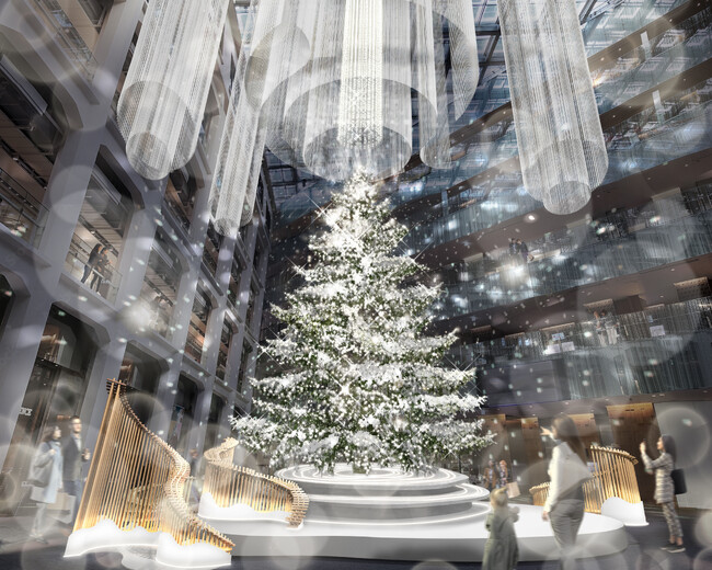 全長約13mの本物のモミの木「White Layer Tree」がアトリウムに出現 KITTEのクリスマスイベント「WHITE KITTE」開催