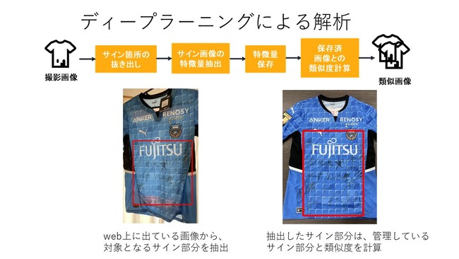 IoTやAIを融合したソフトウェア開発を得意とする株式会社エフィシエント(本社:横浜市西区 代表取締役社長:脇坂健一郎 以下、EFFICIENT)は、サイン入りグッズの画像判定を行う「転売抑止AIエンジン」を独自に開発し、2022年5月23日より川崎フロンターレでの導入・運用を開始したことをお知らせします。本転売抑止AIエンジンはサイン入りユニフォームの画像からサイン箇所の抜き出しと特徴量抽出を行い、保存している元画像から97%の精度で自動判定を可能にします。これにより営利目的の転売を抑止し、ファンへサイン入りグッズを適正なプロセスでお届けすることを実現します。