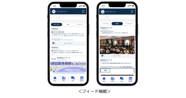 ビジネスコミュニケーションプラットフォーム「WORKUS(ワーカス)」を提供している株式会社OfaaS(オファーズ)(本社:東京都千代田区、代表取締役:大島 吾希洋)は、従来のコワーキング予約機能に加えて、より質の高い社内コミュニケーションの実現や社内情報共有のエンゲージメントを向上させるための新機能を追加いたしましたのでお知らせします。