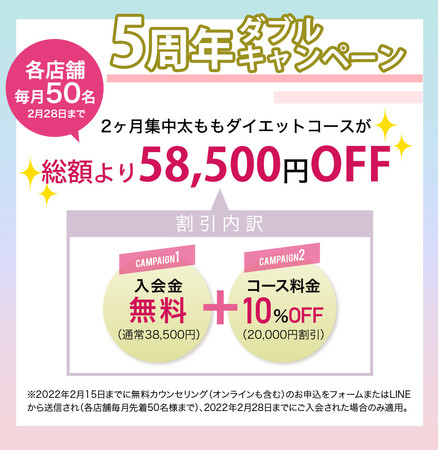 ※2 2022年2月28日までにご入会された場合のみ適用(各店舗毎月先着50名様まで)