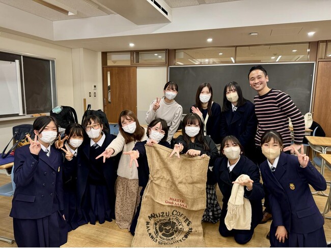 光塩女子学院は、2023年度においてNPO法人聖母とともにソーシャルビジネスの授業と実践を行い、自ら企画した寄付型のフェアトレードコーヒーの宣伝と販売によって、現地の給食で14,000食分の学校給食分の寄付となり、マラウイの小学校、幼稚園の支援に繋げています。ここに大学生のアドバイスや動機付けが加わり、中学生、高校生がさらに成長し、大学生もビジネスにおけるリーダーシップを発揮する場となることが見込まれます。