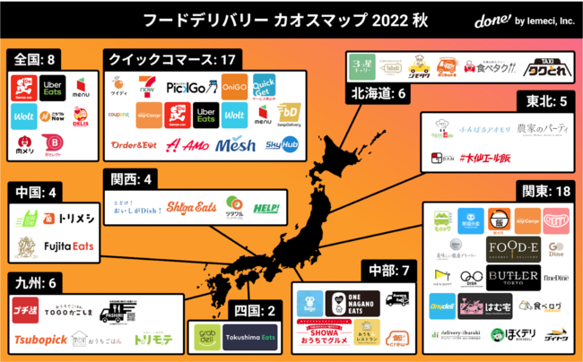 「フードデリバリーカオスマップ2022度秋冬版」、フードデリバリーの一括検索アプリ『done!』を運営する株式会社いえメシが公開