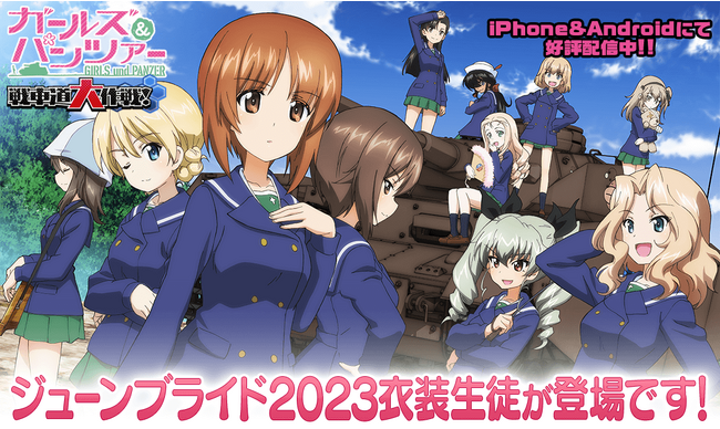 戦車道大作戦実行委員会(株式会社博報堂DYミュージック&ピクチャーズ、株式会社X-VERSE)は、iOS/Android向けゲーム『ガールズ&パンツァー 戦車道大作戦!』において、ジューンブライド2023衣装生徒登場についてお知らせいたします。