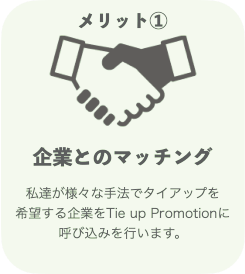 TIE UP PROMOTIONでは、タイアップという形で企業と繋がりを持つことができます。