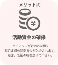 NPO法人が継続的に活動を行えるように、活動資金が確保できます。
