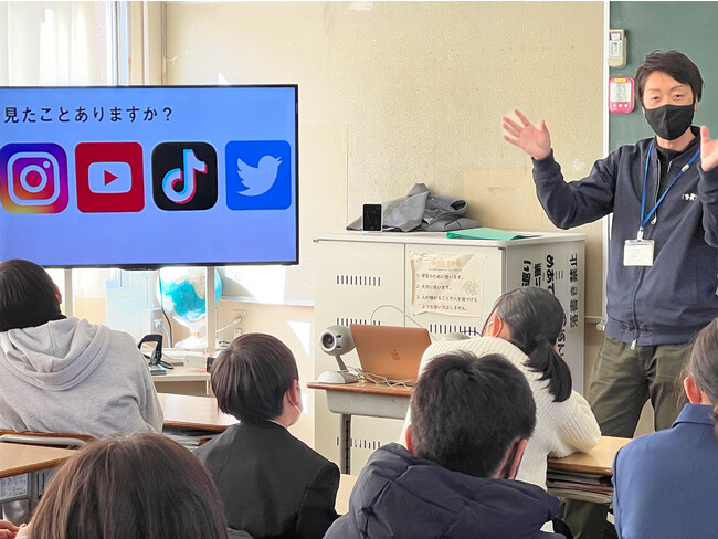 2022年12月に滋賀県立玉川高等学校、今年2月に大津市立北大路中学校の2校で「ネットリテラシー講習」を実施いたしました。合計で約500名以上の中高生が受講。現場の先生方からも好評をいただいております。