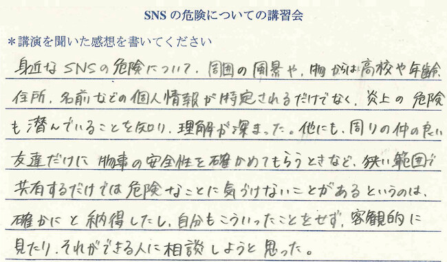 SNSは楽しいし、「イイネは欲しい!!」。でも、「この書き込み、危ないかもしれない」と常に考えることの大切さを伝えていきます。
