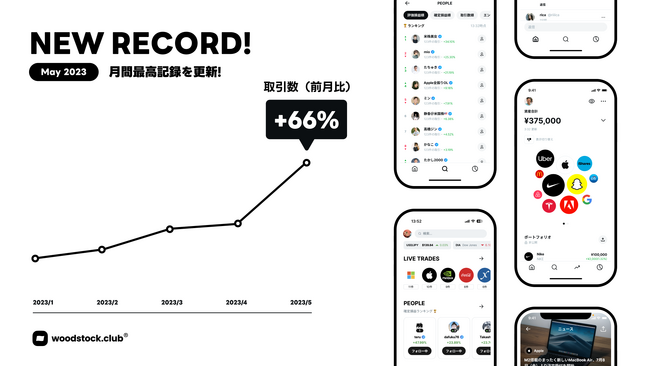 SNS型米国株投資woodstock.clubから新機能続々。5月の取引総数+66%(前月比)など過去最高を更新!