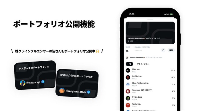 株式投資インフルエンサーとしても有名な、投資カピバラ( https://twitter.com/Capybara_Stock )さんやナスダッ子さん( https://twitter.com/AvFRoosevelt )を始め、多くの方にすでにポートフォリオを公開して頂いています。(*ご本人の承諾を得ています。)
