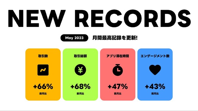 ローンチ以来、口座開設件数の伸長とともに、取引関連及びソーシャル機能関連での各種スコアが大幅に伸長しており、4月に更新した月間記録を、5月におきましても、下記スコア項目にて、過去最多を更新しましたことをご報告させていただきます。特に、取引総数、取引総額については、前月比65%以上の伸長を見せており、多くのユーザーの皆様が、ソーシャル体験の中で、ポートフォリオや取引をシェアしながらみんなで楽しむという新しい投資体験を経験してくださっています。
