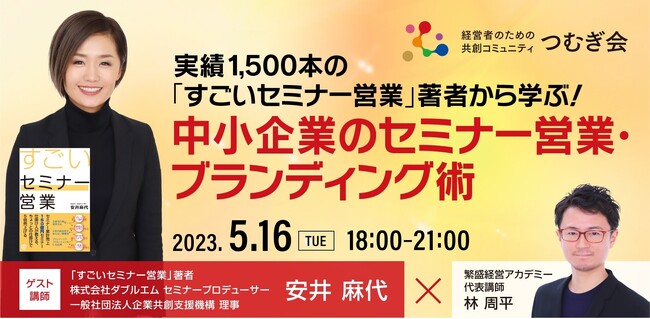 一般社団法人企業共創支援機構(所在地:東京都中央区 代表理事:小沼勢矢)は、運営する繁盛経営アカデミーにて、2023年5月16日に「実績1500本の「すごいセミナー営業」著者から学ぶ! 中小企業のセミナー営業・ブランディング術」をオンライン開催いたします。講師に、セミナー開催実績1500本以上、3万人以上を集客してきた『すごいセミナー営業』 著者 セミナープロデューサー 安井麻代 氏を迎え、オンラインセミナーを開催しているが集客に悩んでいる事業者向けに、実績ある講師から効果的な手法を直接学ぶことができます。ぜひこの機会に、新たな時代に適応したセミナー営業・ブランディング術を習得してください。オンライン開催、参加費無料にてご参加いただけます。