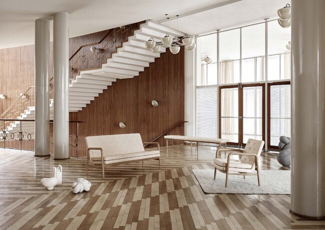 カール・ハンセン&サンは、デンマークが誇る建築家ヴィルヘルム・ラウリッツェン(1894 -1984)が設計した旧ラジオ局「Radiohuset(ラジオハウス)」(1945年コペンハーゲンに完成)のロビーのために製作した家具、Foyer(フォイエ)を製品化し、2023年3月より日本での発売をスタートします。