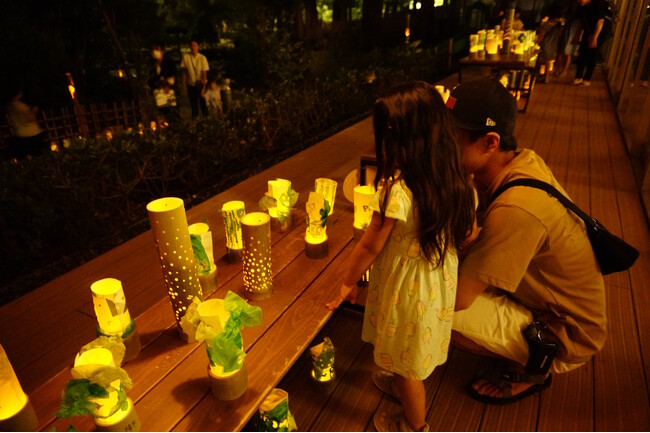 品川区立環境学習交流施設エコルとごし(東京都品川区豊町、館長:中藏康之 / 以下、エコルとごし)は、2023年8月19日(土)に、戸越公園とエコルとごしのウッドデッキを500個以上の竹ランタンで灯す「エコルキャンドルナイト 〜竹と紙のランタンで夜を照らそう〜」を開催しました。