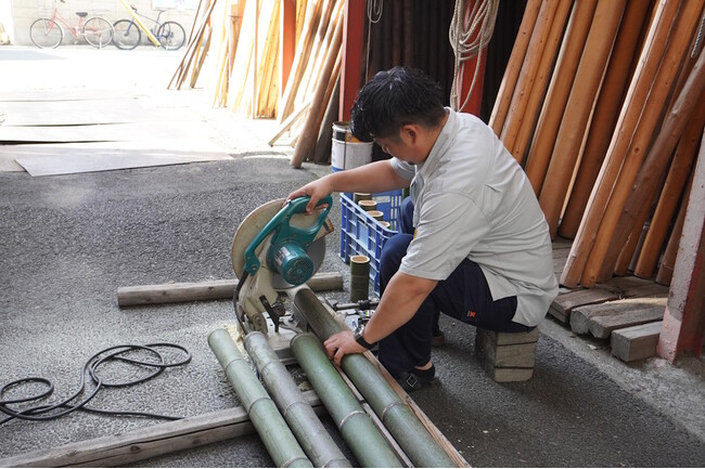 ▲株式会社山十 時田和季さんによる竹材加工の様子