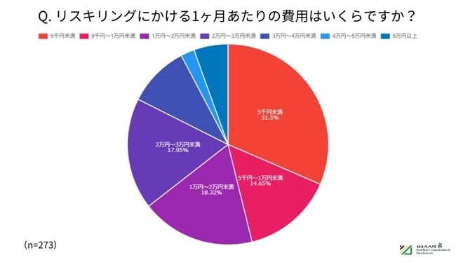 リスキリングにかける費用は、1ヶ月あたり「5千円未満」が最も多い