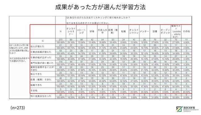 9割以上の方がリスキリングの成果を実感、「収入増加につながった」と答えたフリーランスは約2割
