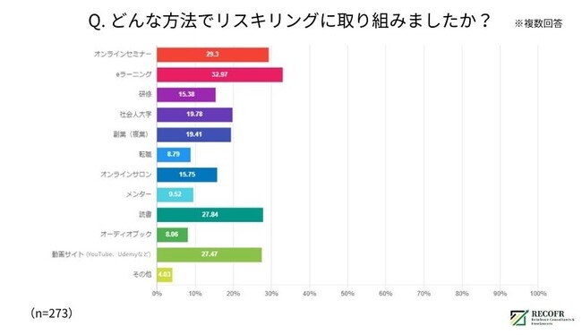 リスキリングに関するアンケートレポート:フリーランス・副業・複業人材の27%が既に「リスキリング」を実施済みと回答。人気スキル第一位は「プログラミング」、オンラインでの効率的な学習が成功の鍵