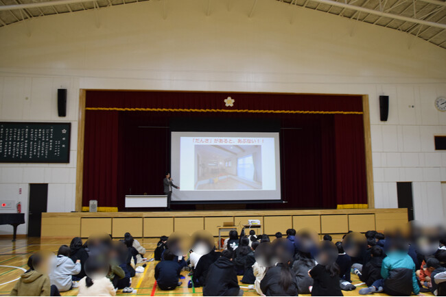 2023年11月に広島県廿日市市立宮園小学校、2024年1月には同市立宮内小学校の小学6年生を対象に、家庭科の授業にて「住宅内事故の現状」と「住まいの安全性」について授業を行っています。
