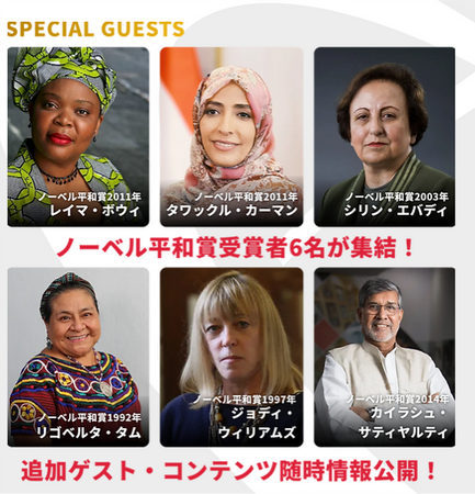 当該ノーベル平和賞受賞者6名が来日し、一堂に会する機会は今回初めてのことであり、貴重な講演とともに、世界平和に向けた重要な提言を行います。