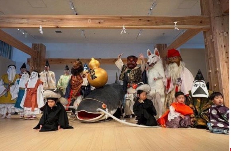 本プロジェクトは伝統芸能との共創の場ともなり、特に籔内佐斗司氏監修の**創作伎楽「Co-GIGAKU」**では、子どもたちが稽古を重ねて初演『鯰しづめ』を成功させ、万博を起点とする新たな教育文化活動が始まりました。
