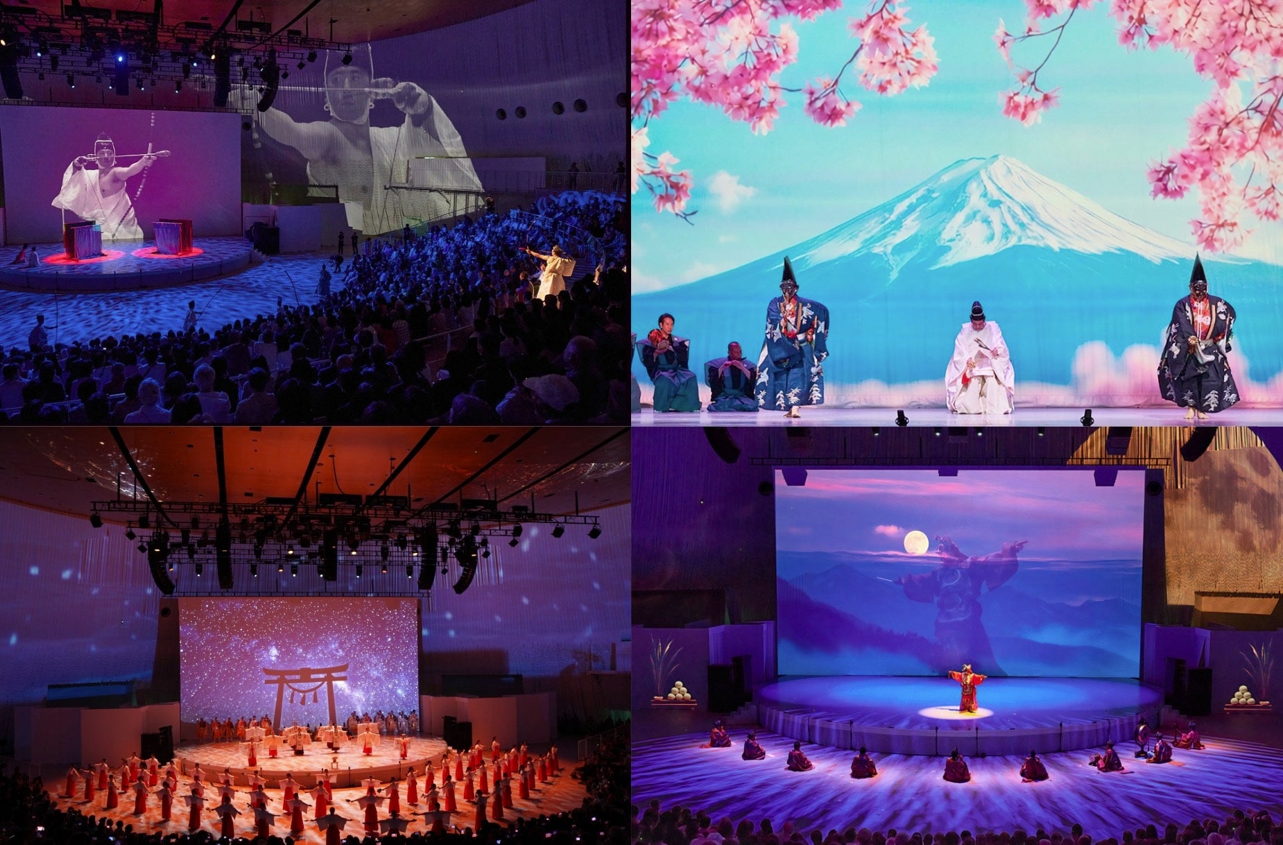 この舞台は、間伐材を接着剤を使わず寄せ木造りの技術で組み上げ、千年檜に匹敵する強度を実現。会期中は能や日本舞踊など多様な演目が行われ、各県からのメッセージ映像も公開されました。
