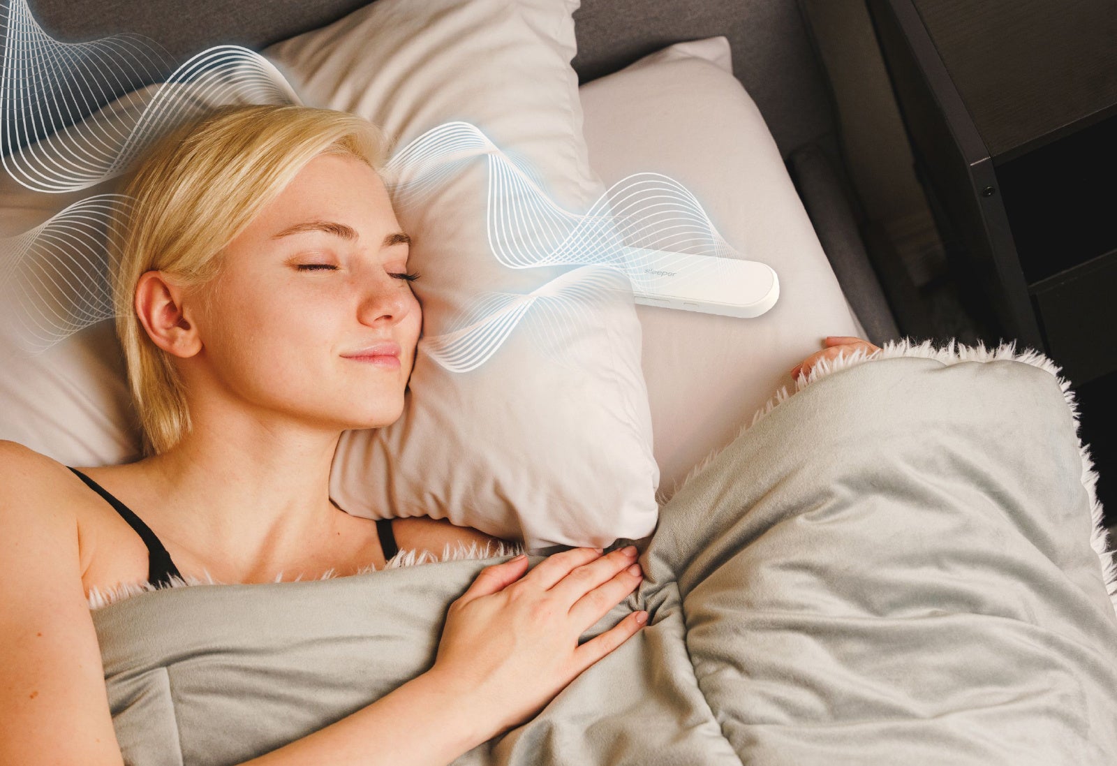 本体を枕の下に置くと、まるで枕がスピーカーのような役割を果たし、心地よい音響空間に。隣りで眠る家族の邪魔はしない緻密な設計で、自分だけの特別な夜を楽しめます。