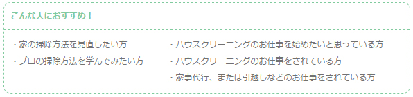 ハウスクリーニングのお仕事を始めたい方、または既にお仕事されている方、プロの掃除方法を学んでみたい方、必見!