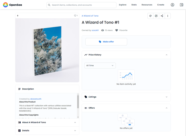 株式会社Next Commons(本社:岩手県遠野市)は、小説『僕らのネクロマンシー』(著:佐々木大輔, 出版:NUMABOOKS)のNFT版「A Wizard of Tono」を、「遠野物語の日」である6月14日に発売します。売り出し価格は0.1ETH(6月14日午前0時時点で約1.6万円)、販売数は限定119個で、使用するブロックチェーンはイーサリアムです。なお、電子書籍版もKindleストアを通じて同時に発売され、こちらは1,485円(税込)です。