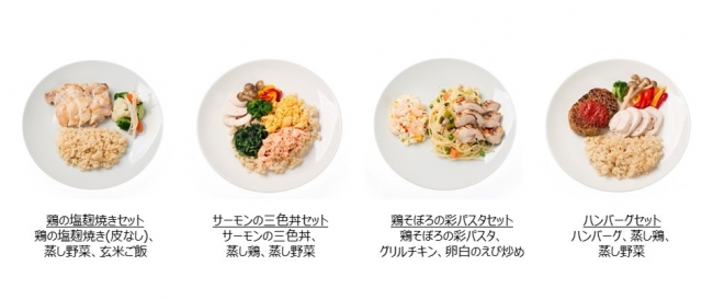 Muscle Deliのメニューは、栄養士が筋肉づくりに必要なタンパク質、ビタミンB群を多く含み、糖質が少ないメニュー構成を考えています。 1、減量用、2、維持用、3、増量用と目的別に3タイプのメニューを用意しております。主なメニューは「鶏の塩麴焼きセット」「サーモン三色丼セット」「ハンバーグセット」など。料金は5食セット5300円(税別)〜。(http://muscledeli.co.jp/)