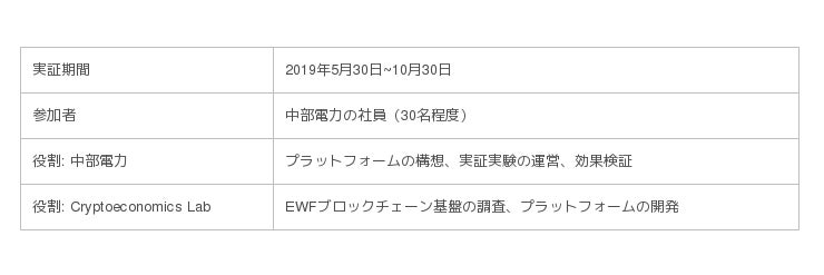 株式会社 Cryptoeconomics Lab(所在地:東京都新宿区、代表取締役:片岡 拓)と中部電力株式会社(所在地 : 名古屋市東区、代表取締役社長:勝野 哲)は、本日から、ブロックチェーン ※1 を活用して太陽光発電により発電して余った電力(以下、余剰電力)を個人間で取引する実証実験(以下、本実証実験)を開始します。