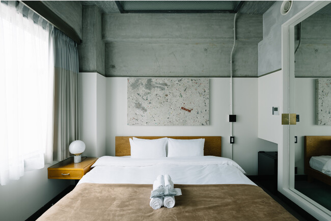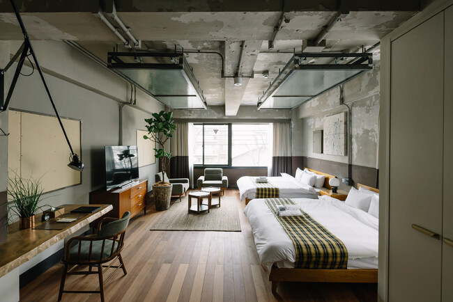 ホテルはSNSでも話題になったRCホテル京都八坂の姉妹店、「HOTEL inc.」。昭和初期築の印刷工場を改装して作られたホテルはいたるところに昔の工場の面影が残ります。