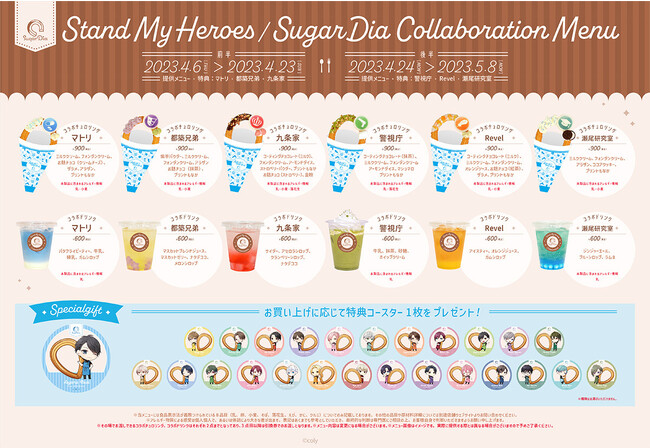 株式会社coly(東京都港区、代表取締役:中島瑞木、証券コード:4175)が運営するテイクアウト専門スイーツ店『SugarDia 原宿』では、2023年4月6日(木)より、女性向けシナリオ×パズルゲーム『スタンドマイヒーローズ』とのコラボレーションを開催いたします。