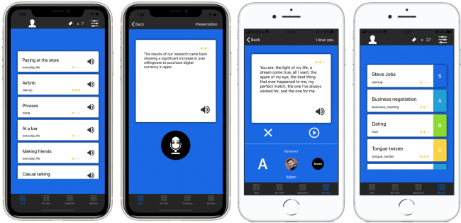 ネイティブの音声フィードバックはアプリ内に蓄積され、いつでもすぐに復習が可能です。