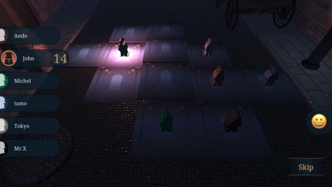 全員が移動すると夜のターンが訪れます。夜のターン、ジャックプレイヤーは自分の隣接するタイルを選択し、そのタイルで殺人を犯します。