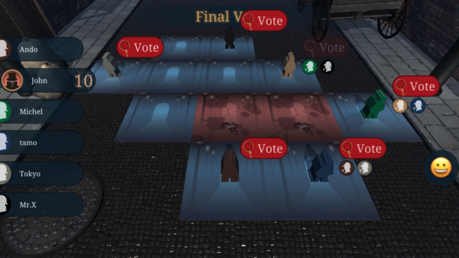 2回の犯行が行われた後、全員でジャックだと思われるプレイヤーに投票を行います。