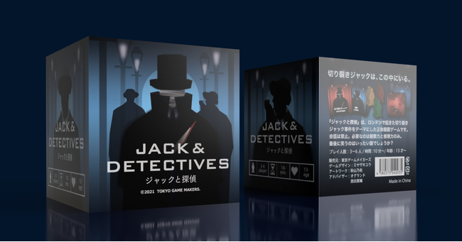 ジャックと探偵は、東京を拠点にアナログゲーム制作を行うクリエイター集団「東京ゲームメイカーズ」(https://tokyogamemakers.com/) が制作したボードゲームです。