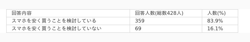 ・「スマホを安く買うことを検討している」は359人(83.9%)