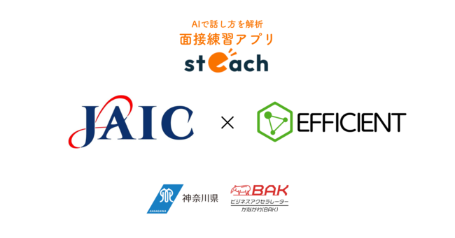 株式会社エフィシエント(本社:横浜市西区 代表取締役社長:脇坂健一郎 以下、EFFICIENT)は、就職支援事業を展開する株式会社ジェイック(本社:東京千代田区 代表取締役社長:佐藤剛志 以下、ジェイック)と、面接練習アプリ『steach』を2022年5月23日に正式リリースしました。steachは、ユーザーがスマホで面接の質問に回答した音声と動画をAI解析エンジンが解析し、表情、声、身振りをもとに定量的なアドバイスをAIが行います。面接で頻出する質問のパターンを用意しており、新卒、転職、アルバイトなどの多様な面接シーンで活用いただけます。