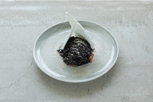 黒ごまで作ったgoma to一押しのモンブラン。ごま油を塗ったメレンゲを割って、濃厚な黒ごまクリームと一緒にメレンゲの食感、ごま油の香りをご堪能ください。