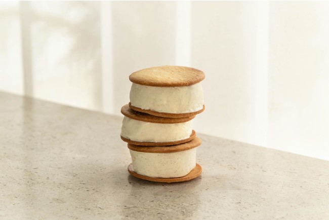 ねりごまとすりごまを混ぜた白ごまアイスを、プレーンクッキーでサンドしたテイクアウト限定スイーツ。白ごまのフレーバーとミルクの味わいが混ざり、上品で柔らかな仕上がりとなっています。