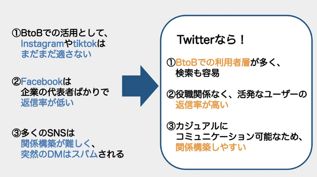 ご支援先では、アポイント数・受注数が激増しております。イーロン・マスク氏の影響もあることで、Twitterはユーザー数が増加傾向にあり、Twitter活用した見込み客との接点はBtoB企業でも、日々重要視されています。
