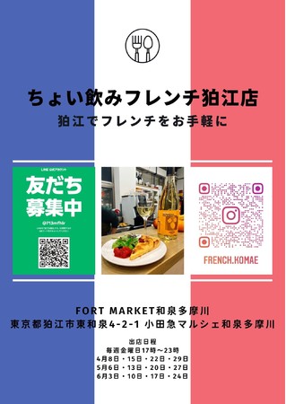 【新店オープン】「ちょい飲みフレンチ狛江店」を4月8日(金曜)17時にFORT MARKET和泉多摩川でオープンします。