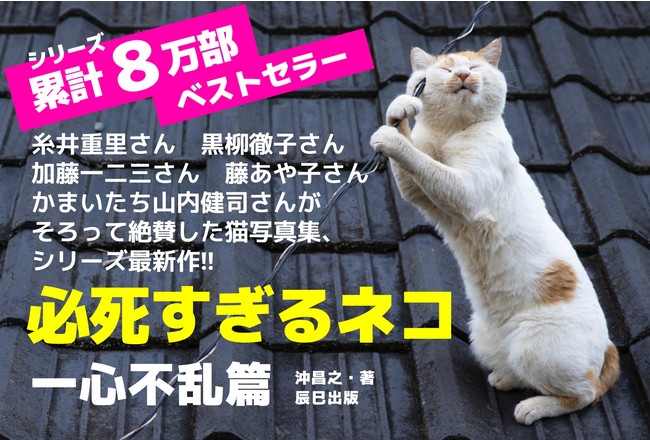 糸井重里さん、黒柳徹子さん、加藤一二三さん、藤あや子さん、かまいたち山内健司さんらが揃って絶賛し、「スッキリ」「天才!志村どうぶつ園」などで紹介された写真集『必死すぎるネコ』シリーズの最新作!!