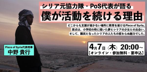 【イベント名】シリア元協力隊・PoS代表が語る「僕が活動を続ける理由」【Piece of Syria活動説明会 4月】